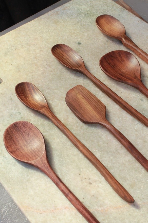 Artesanales, piezas únicas y a conciencia. Por su veta o por su forma, ninguna es idéntica a la anterior . Pueden presentar "imperfecciones" propias de la madera maciza como: agujeritos de ramas, insectos, nudos, vetas cruzadas; pero esquivo rajaduras para lograr piezas más estables. Sello todos los huecos con materiales resistentes e inertes al contacto con la comida.