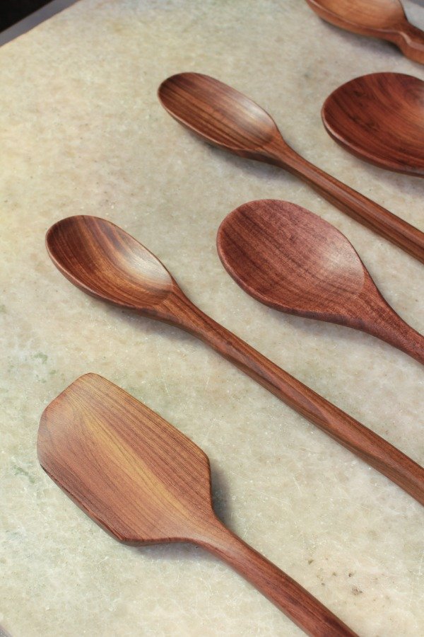 Artesanales, piezas únicas y a conciencia. Por su veta o por su forma, ninguna es idéntica a la anterior . Pueden presentar "imperfecciones" propias de la madera maciza como: agujeritos de ramas, insectos, nudos, vetas cruzadas; pero esquivo rajaduras para lograr piezas más estables. Sello todos los huecos con materiales resistentes e inertes al contacto con la comida.