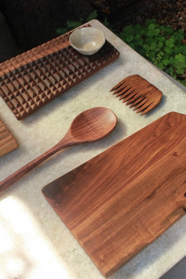 Artesanales, piezas únicas y a conciencia. Por su veta o por su forma, ninguna es idéntica a la anterior . Pueden presentar "imperfecciones" propias de la madera maciza como: agujeritos de ramas, insectos, nudos, vetas cruzadas; pero esquivo rajaduras para lograr piezas más estables. Sello todos los huecos con materiales resistentes e inertes al contacto con la comida.