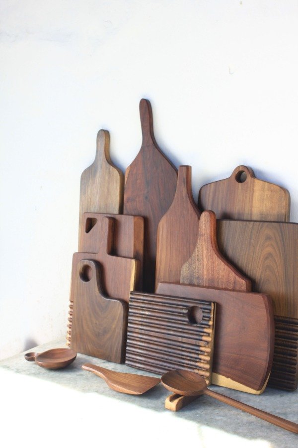 Artesanales, piezas únicas trabajadas a mano. Por su veta o por su forma, ninguna es idéntica a la anterior . Pueden presentar "imperfecciones" propias de la madera maciza como: agujeritos de ramas, insectos, nudos, vetas cruzadas; pero esquivo rajaduras para lograr piezas más estables. Todo hueco se sella con materiales inertes al contacto con la comida.