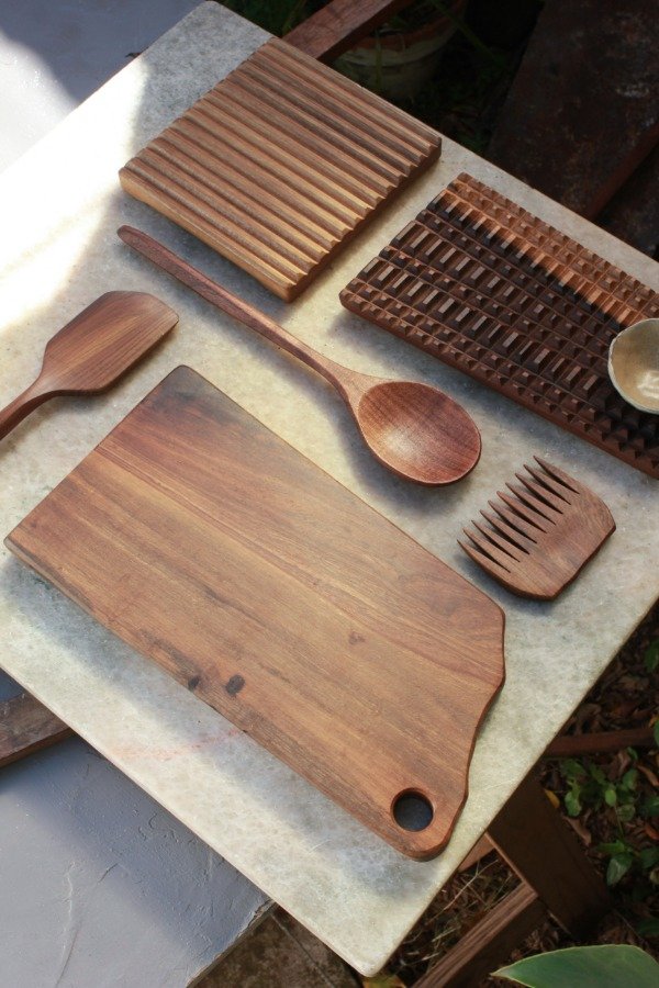 Artesanales, piezas únicas trabajadas a mano. Por su veta o por su forma, ninguna es idéntica a la anterior . Pueden presentar "imperfecciones" propias de la madera maciza como: agujeritos de ramas, insectos, nudos, vetas cruzadas; pero esquivo rajaduras para lograr piezas más estables. Todo hueco se sella con materiales inertes al contacto con la comida.